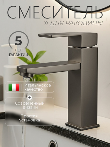 Дизайнерский смеситель для раковины в ванной / однорычажный / квадратный / сатин, серый