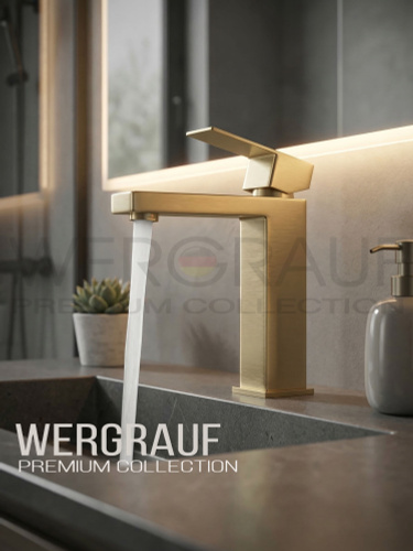Смеситель для раковины в ванну , кран для раковины квадратный , Wergrauf, золотой Сатин