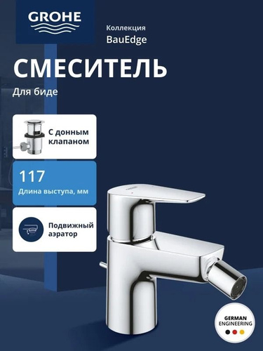 Смеситель для биде GROHE BauEdge с рычажным донным клапаном, хром (23331001)