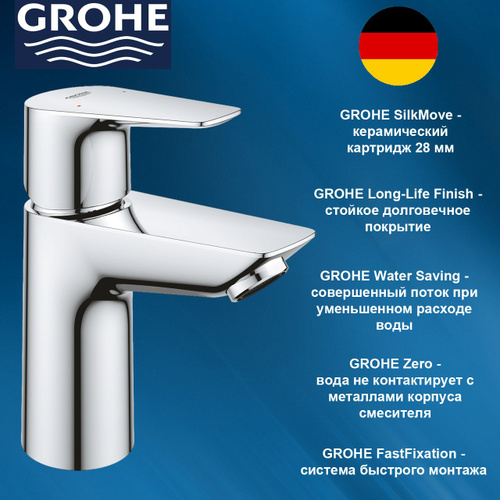 Смеситель для раковины GROHE BauEdge, S-size 23329000, хром