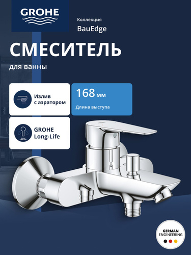 Смеситель для ванны GROHE BauEdge, хром (23604001)
