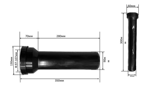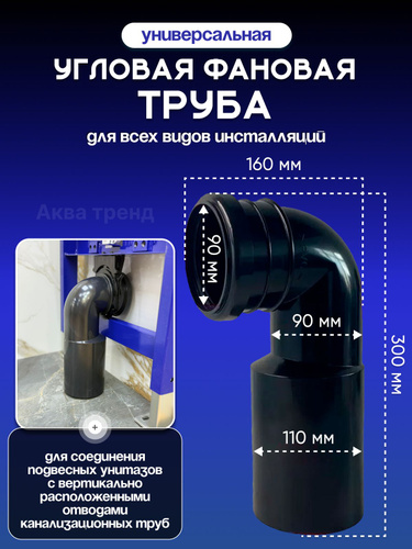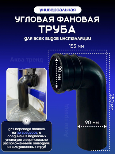 Удлиненная фановая труба для инсталляции под углом 90 градусов, диаметр 90 мм
