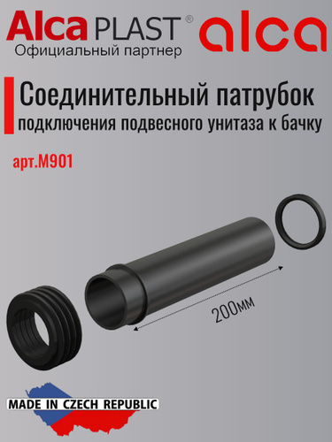 Соединительный патрубок Alcaplast M901 для подвесного унитаза с прокладкой и манжетой