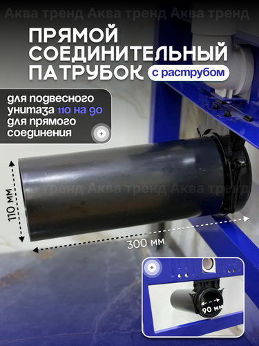 Соединительный патрубок выпускной прямой для инсталляции DN 90. 30см