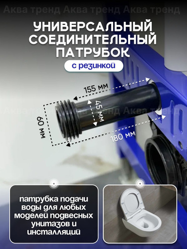 Соединительный патрубок с резинкой для инсталляции Ф45 ( патрубка подачи воды для подвесного унитаза)