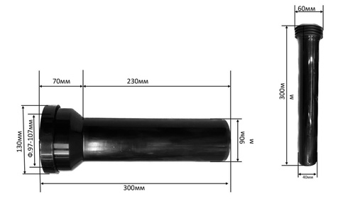 Соединительный патрубок выпускной прямой для инсталляции DN 90. 30см 1 шт