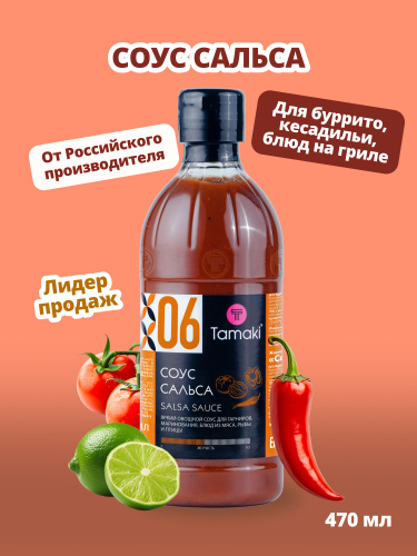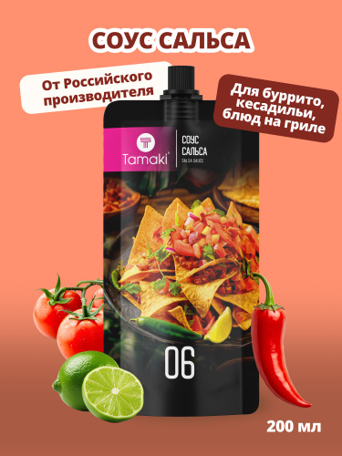 Соус Сальса Tamaki 200мл, Среднеострый, насыщенный, овощной с ароматом специй и лайма для мяса и птицы, гриля, бургеров
