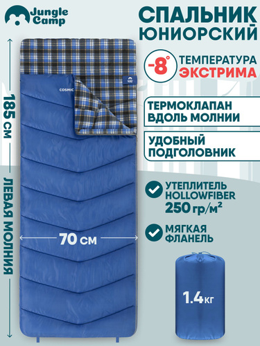 Спальный мешок для подростка, спальник туристический, детский, одеяло JUNGLE CAMP Cosmic Comfort JR, с фланелью, цвет голубой