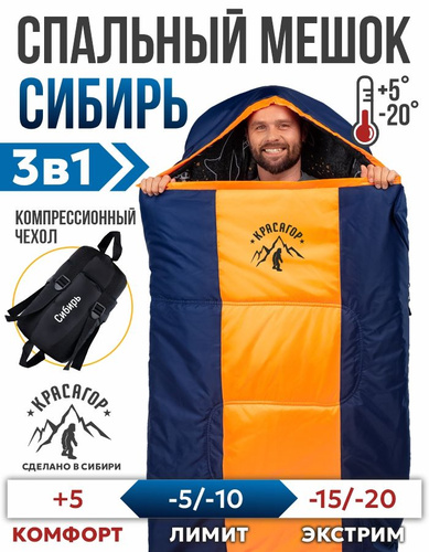 Спальный мешок туристический Красагор Сибирь до -20 (оранжевый)