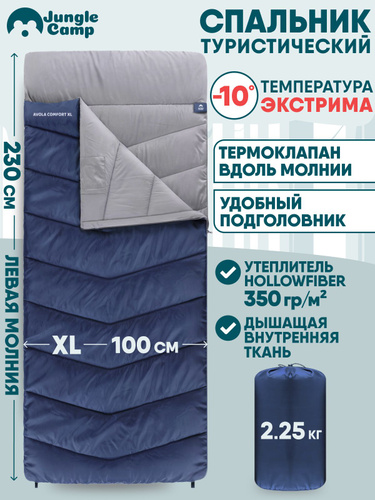 Спальник/Спальный мешок зимний Jungle Camp Avola Comfort, с подголовником, левая молния, цвет: синий, размер (200+30) х 85 см