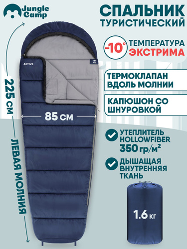 Спальник/Спальный мешок зимний Jungle Camp Active, левая молния, цвет: синий/серый