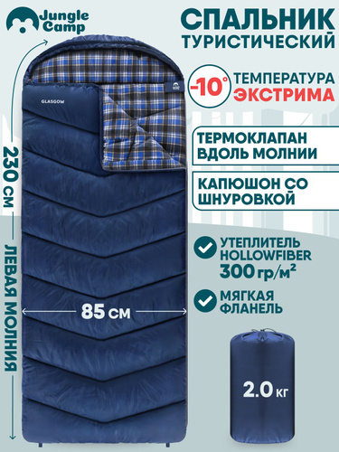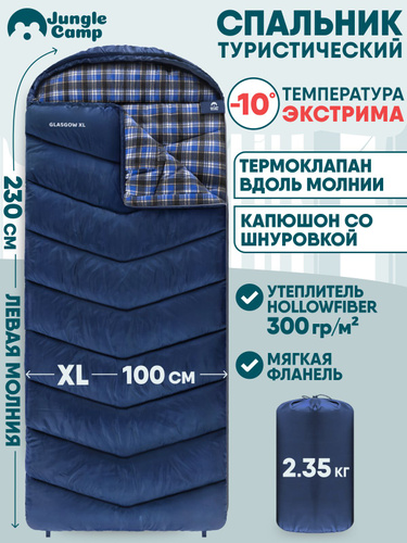 Спальный мешок туристический, спальник зимний Jungle Camp Glasgow XL, с фланелью, левая молния, цвет: синий