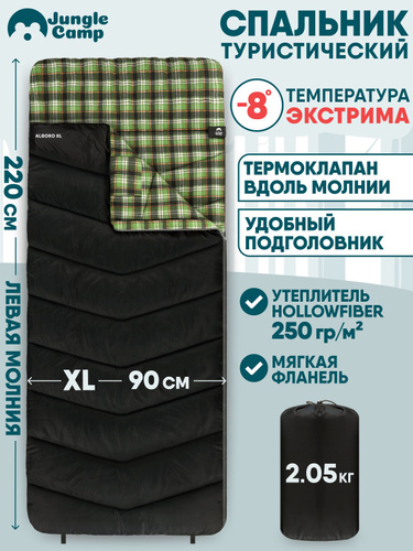 Спальный мешок Jungle Camp Alboro XL, с фланелью, с подголовником, цвет: черный