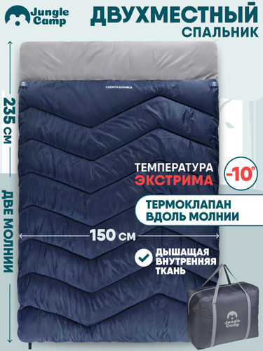 Спальный мешок двухместный, спальник туристический, зимний Jungle Camp Trento Double, две молнии, цвет синий