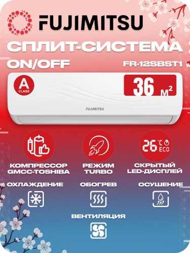 Сплит система настенная FUJIMITSU FR-12SBST1 белая, комплект, компрессор GMCC, On/Off, до 36 кв/м