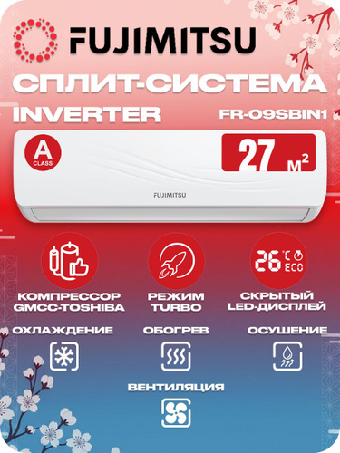 Сплит система инверторная настенная FUJIMITSU FR-09SBIN1 белая, комплект, компрессор GMCC, до 27 кв/м
