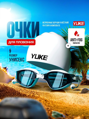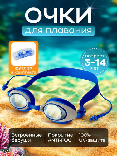 Очки для плавания детские, взрослые спортивные для бассейна с футляром и берушами