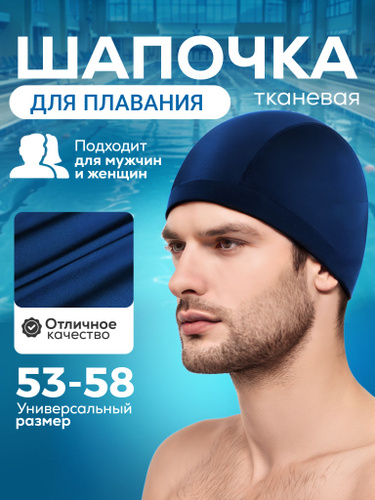 Шапка для бассейна мужская женская тканевая взрослая, шапочка для плавания детская синяя для волос унисекс