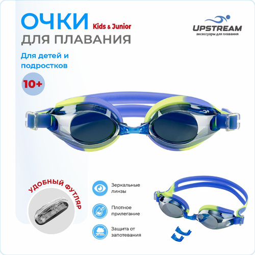 UPSTREAM Очки для плавания детские, для бассейна и моря, УФ-защита, 6-12 лет