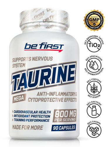 Антиоксидант таурин в капсулах 800 мг аминокислота для энергии, бодрости и выносливости Be First Taurine Capsules, 90 капсул