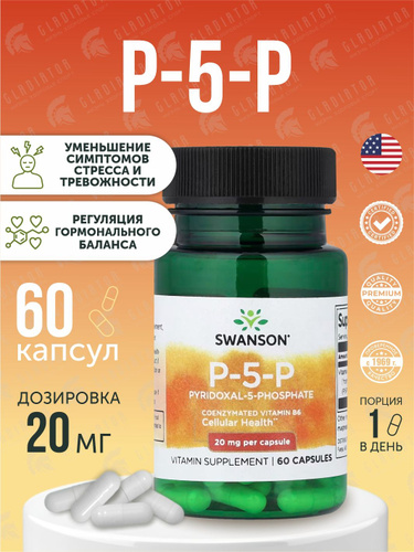 Swanson Витамин в6 P-5-P пиридоксаль-5-фосфат, 20 мг, 60 капсул