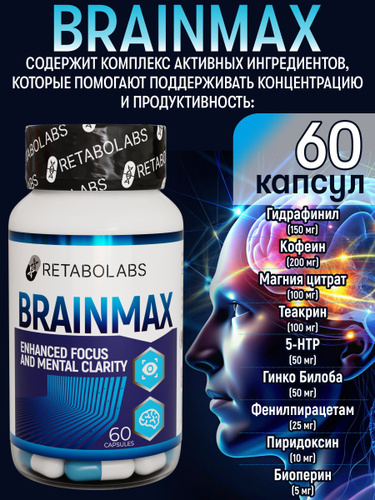 ГАБА в капсулах по 550 мг / Гамма-аминомасляная кислота Binasport "GABA" 60 капс / ГАМК