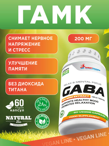 Аминокислота ГАБА GABA ГАМК капсулы, 60 капс