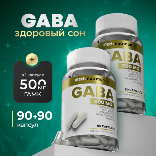 GABA в капсулах габа 500 мг ГАМК 180 капсул 90 + 90 успокоительное aTech nutrition