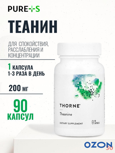 Теанин 200 мг, Theanine 200 mg, Thorne Research, 90 капсул