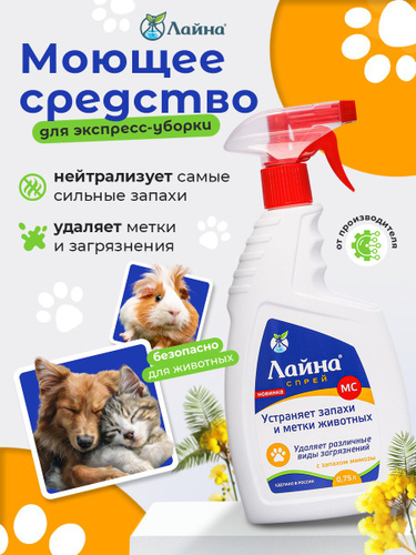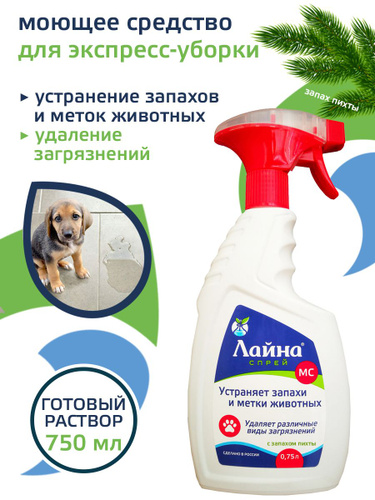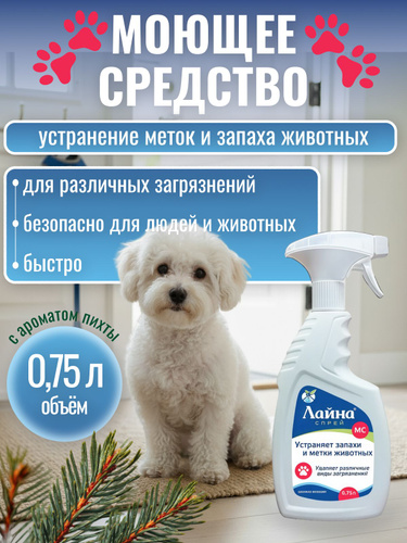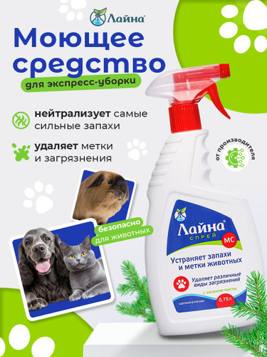 Лайна для животных средство для уборки и дезинфекции, нейтрализатор ликвидатор запахов кошачьей мочи. Спрей МС против запахов и меток домашних животных с ароматом пихты, 750 мл