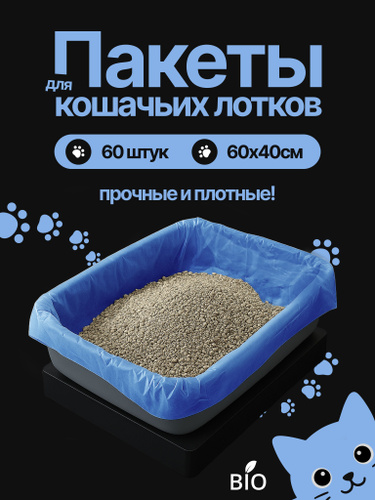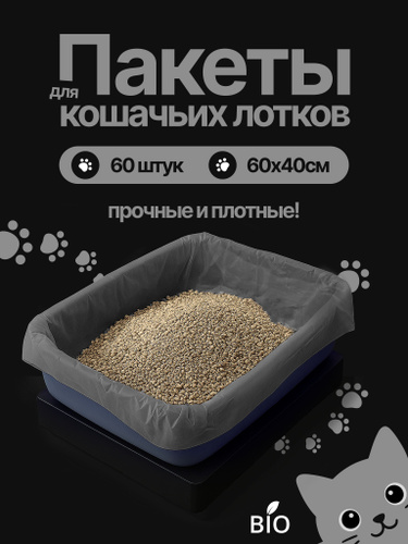 Пакеты для лотка кошки Make&Pack для уборки за животными, мешки для лотка большие 60х40 см со складками по 15 см, набор 60 штук