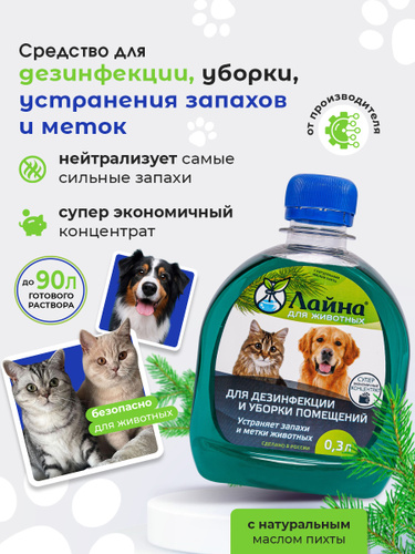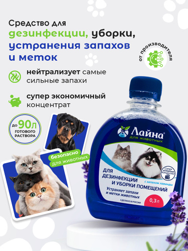 Средство для уборки за животными, дезинфицирующее средство "Лайна для животных" Концентрат для уборки помещений с запахом Лаванды 0.3л