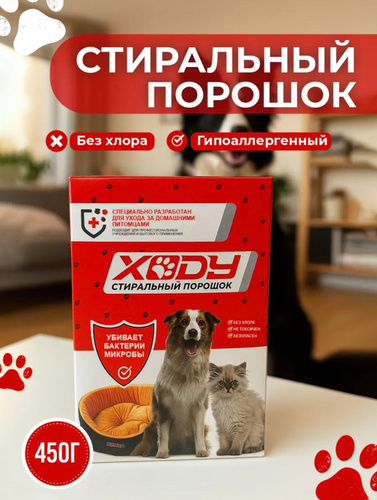 XODY/Стиральный порошок/ устраняет органические загрязнения и запахи домашних животных. XODY, 450гр