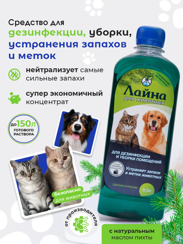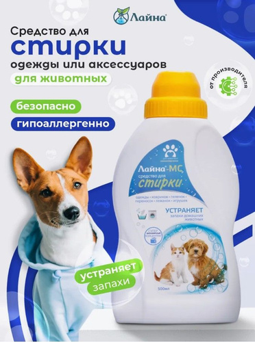 Лайна - МС средство для СТИРКИ 0.5л / устраняет запахи домашних животных, устраняет органические загрязнения, нейтрализатор ликвидатор запахов