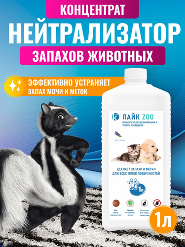 Нейтрализатор, поглотитель запаха животных, кошачьего туалета, кошачьей мочи и мочи собак, меток котов K-DEZ Лайк ZOO 1 л, средство для уборки, дезинфекции, концентрат
