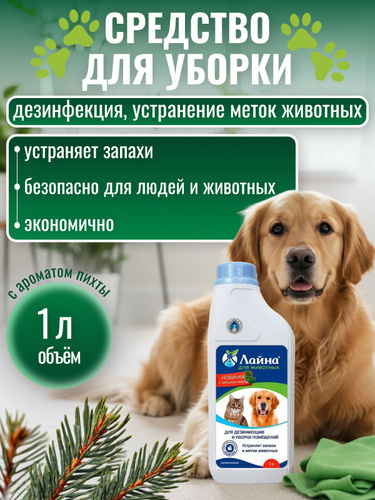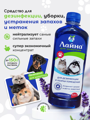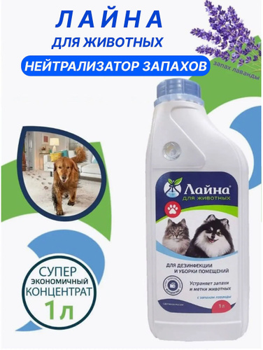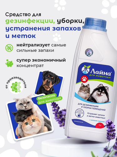 Средство для уборки за животными, дезинфицирующее средство "Лайна для животных" Концентрат для уборки помещений с запахом Лаванды 1л