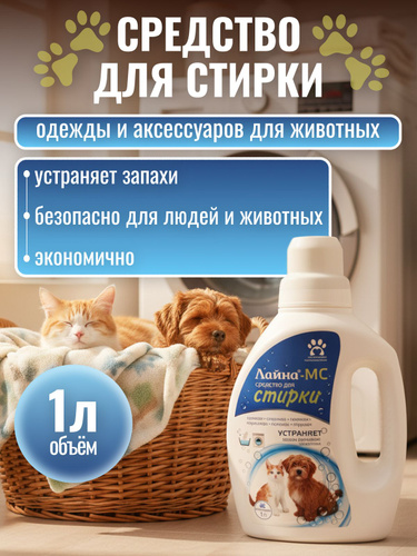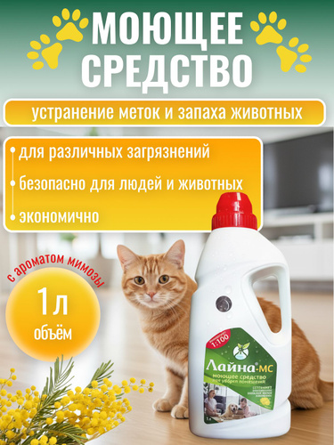 Лайна - МС средство для СТИРКИ 1л / устраняет запахи домашних животных, устраняет органические загрязнения, нейтрализатор ликвидатор запахов кошачьей мочи и меток