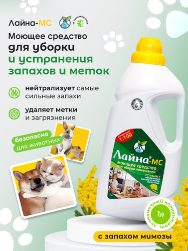 Концентрированное моющее средство с устранением запаха для уборки помещений и мест содержания домашних животных Лайна-МС Мимоза 1л