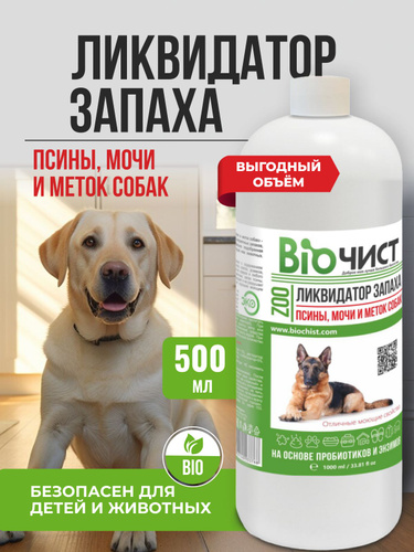 Нейтрализатор запахов Биочист / Средство для уборки за животными от запаха псины, мочи и меток собак, 1 л