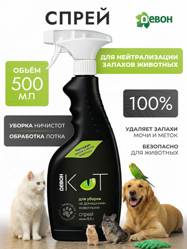Девон-Кот/ Нейтрализатор запаха кошачьей мочи, мочи и меток домашних животных, 0,5 л, для уборки за кошками и собаками и обработки лотков
