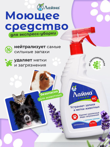Лайна для животных средство для уборки и дезинфекции, нейтрализатор ликвидатор запахов кошачьей мочи и меток. Спрей МС против запахов и меток домашних животных, с ароматом Лаванды, 750 мл