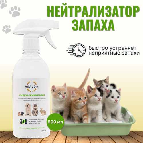 VITA UDIN Дезинфицирующее средство / Поглотитель, нейтрализатор, устранение запаха животных, 500мл, для мытья лотков