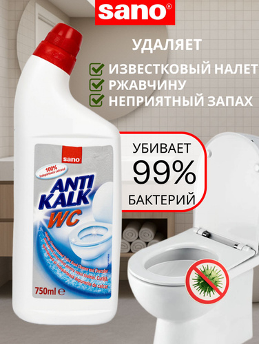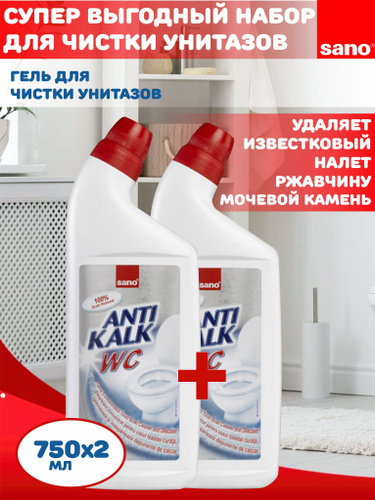Sano Antikalk Чистящее средство для унитаза, гель для чистки туалета с антибактериальным эффектом, 2 шт по 750 мл