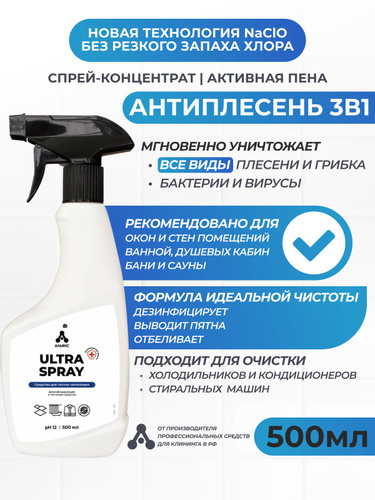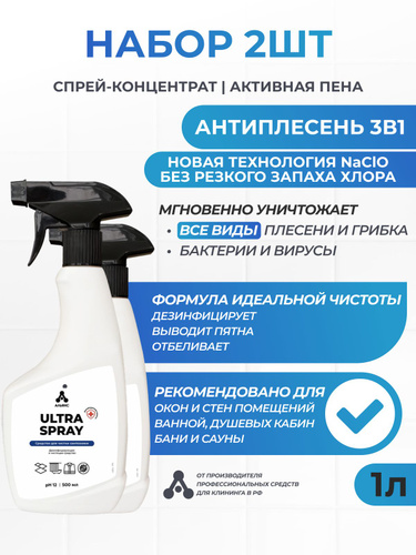 Спрей Белизна/Чистящее средство для ванн и туалетов: от плесени и грибка, дизинфицирует, отбеливает - "Ultra Spray" набор из 2-х штук по 500мл