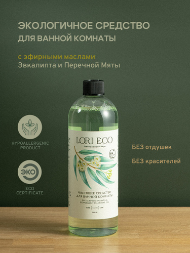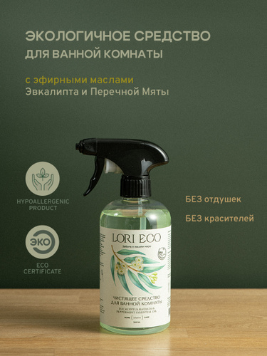 LORI ECO Чистящее средство для ванной с эфирным маслом Эвкалипт и Перечная Мята, без отдушек, без красителей, экологичное, 500 мл.