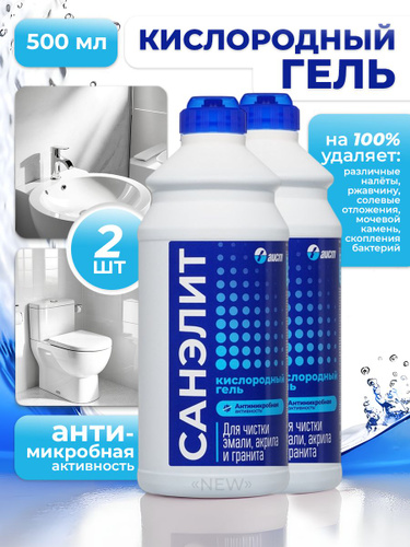 Санэлит Гель кислородный для ванн и душевых кабин, для чистки эмали, акрила и гранита, 500 мл, 2 шт./