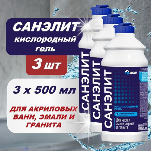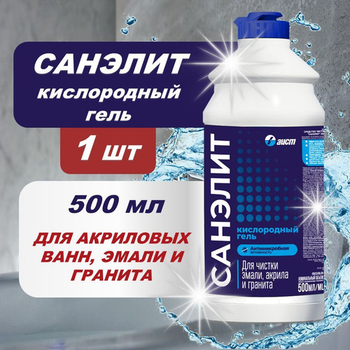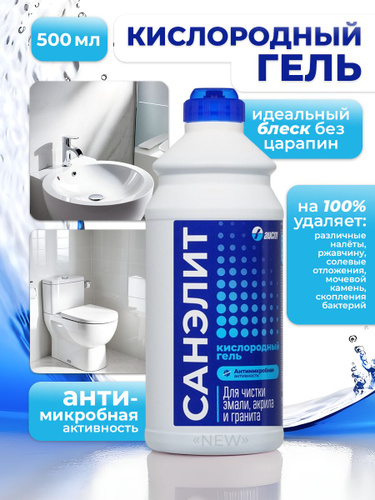 Санэлит Гель кислородный для ванн и душевых кабин, для чистки эмали, акрила и гранита, 500 мл/
