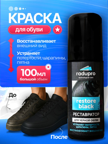 Краска для обуви черная, для кроссовок, реставратор цвета Radupro 100мл