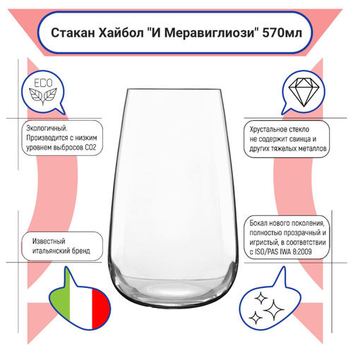 Стакан Хайбол "И Меравиглиози" "Bormioli Luigi" хр.стекло 0,57л D 86 H 140мм прозр. (Италия)