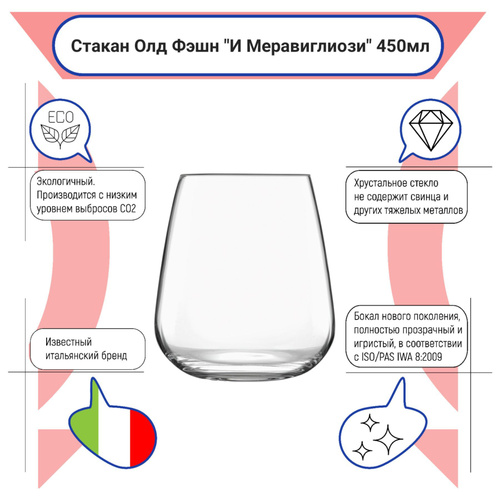Стакан Олд Фэшн "И Меравиглиози" "Bormioli Luigi" хр.стекло 450мл D 91 H 99мм прозр. (Италия)